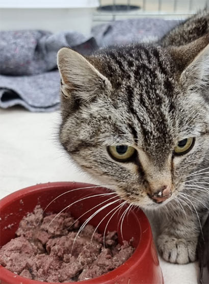 Leider war ihr Zustand sehr schlecht und man ist sich sicher, dass die arme Kätzin schon lange große Schmerzen haben musste und und die Schwäche auf der Hinterhand war mit ein Ergebnis ihres unfassbar traurigen und schmerzvollen Leidenswegs.