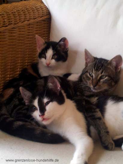| Luna und Tom haben gemeinsam ein tolles Zuhause in Freiburg gefunden, Jerry durfte auf seiner Pflegestelle bleiben. Sie danken Allen, die Ihnen den Weg dorthin ermöglicht haben. |