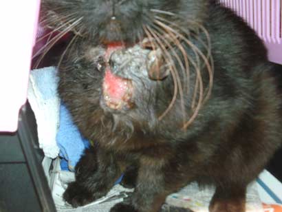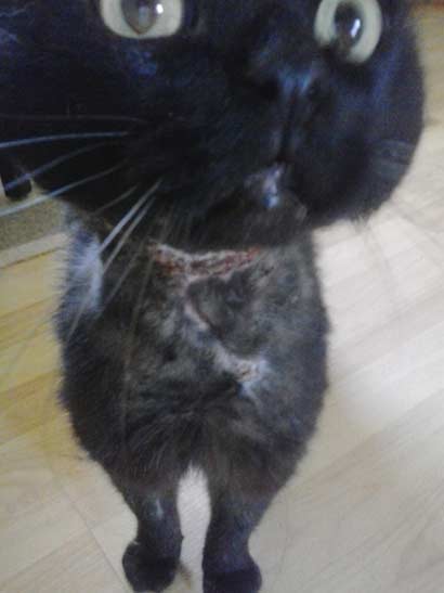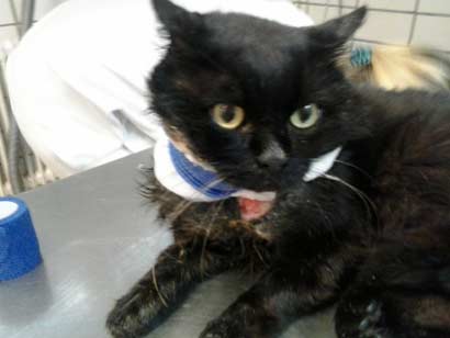 Der Kater Marcel musste schon einige Wochen mit dieser schrecklichen Verletzung unterwegs gewesen sein, bis er gefangen und in die Tierklinik gebracht werden konnte.