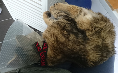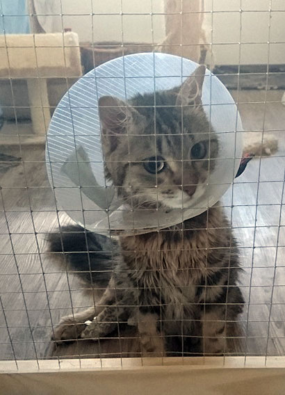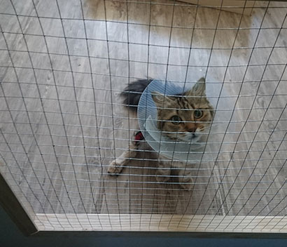 Mariella ist inzwischen in ihr „neues“ Zimmer umgezogen, der Fixateur ist raus und kastriert wurde sie auch noch gleich….