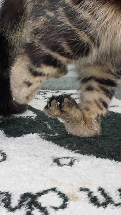 Da es Ihn nicht stört und er mit Sicherheit mit einer Ruhigstellung über Monate nicht klar kommen wird, haben wir uns entschlossen solange der Kater keine Schmerzen hat die schwerwiegende Operation nicht durchzuführen.