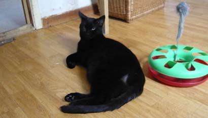 Maxi (in France Pouffnoir; uns gehen langsam die Namen aus) ist ein junger ca. 10 monatiger schwarzer hübscher Kater.