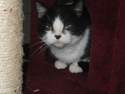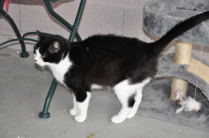 Da sich Micky auch nicht in den Vordergrund drängt, fällt sie im Katzengehege gar nicht auf.