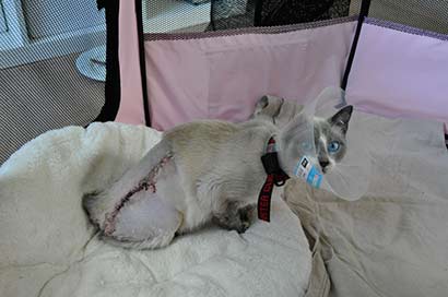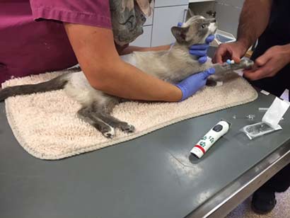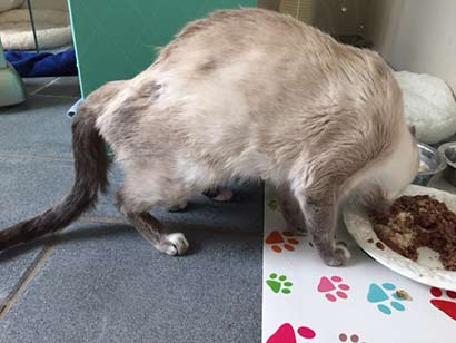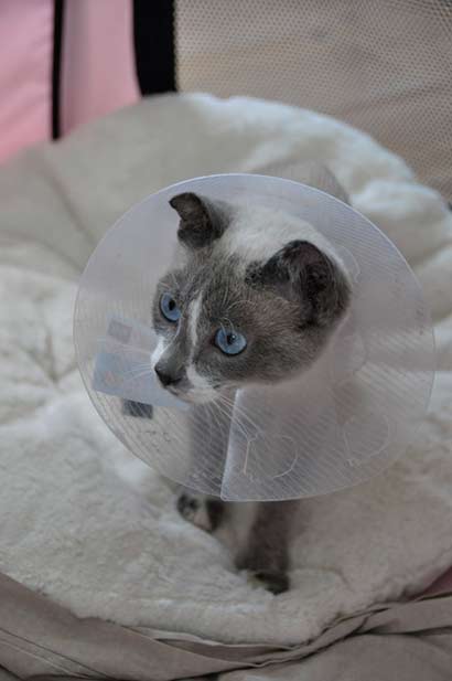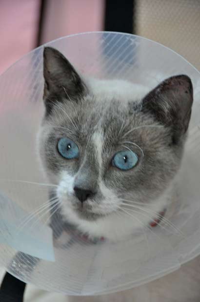 Nach fast einer Woche stationären Aufenthalts in der Klinik durfte die hübsche Thaikatze nun auf eine versierte Pflegestelle ziehen, wo sie liebevoll gepäppelt und ihre „Zimmerruhe“ kontrolliert werden kann.