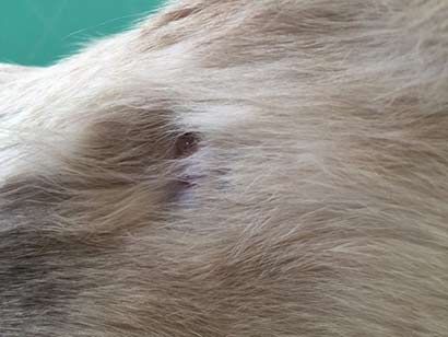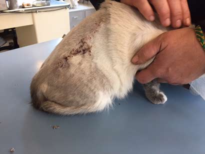 Es war für die zierliche Katze Fünf vor Zwölf: durch die entzündete Bissverletzung hatte sich in ihrem Körper ein riesengroßer – 20 cm !!! – Abszess gebildet, der bereits in die Muskulatur bis hoch in die Wirbelkörper eingeschmolzen war.