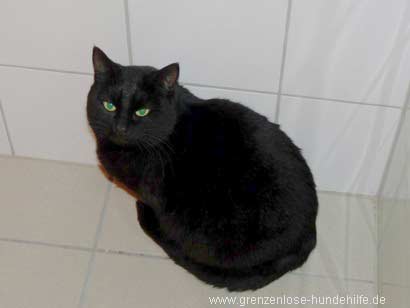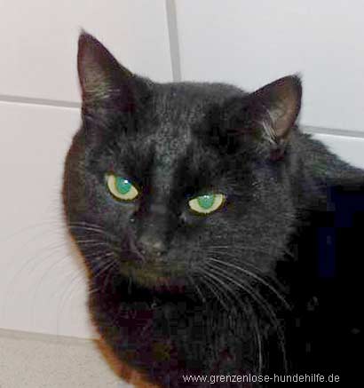 Miss ist eine wunderschöne, schwarze Katze mit auffallend smaragdfarbenen Augen.