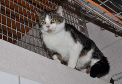 Auch Missy ist ganz neu im Tierheim. Beim Fotosmachen hatte sie solche Angst vor dem Blitz, dass sie furchtbar erschrak und nach ganz oben auf ein kleines Mäuerchen gesprungen ist. Von dort wollte sie auch erst einmal nicht mehr runter.