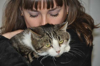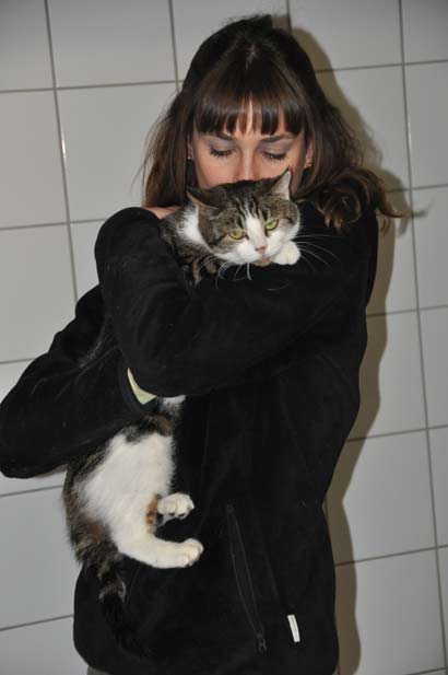 ihre Familie, ihre - ihre geliebten - Katzenfreunde, ihr Zuhause, die ihr vertraute Umgebung und ihre Freiheit. Das hat die Kleine komplett aus der Bahn geworfen und sie verkriecht sich meistens nur noch in ihrer Katzenhöhle und leidet still vor sich hin. Wenn wir schaffen, sie dort hervorzulocken, sie auf den Arm zu nehmen, dann kann sie genießen und sie saugt jede Zuwendung auf.