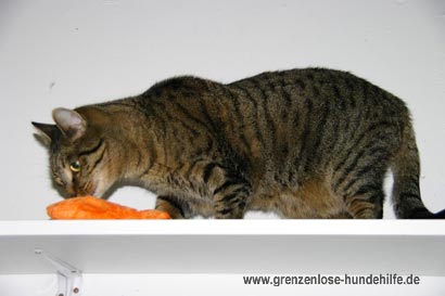 Aber sie ist noch sehr verspielt. Wir wünschen uns ein Zuhause mit Freigang für sie.