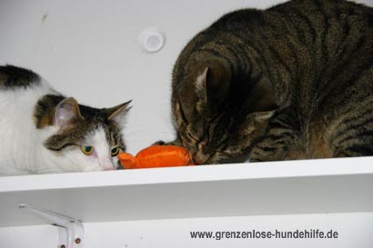 Mitsie bekam von ihrer lieben Patin Spielzeug und Futter zu Weihnachten geschenkt...