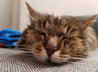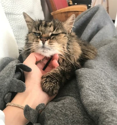 "Mitzi wird im März stolze 18 Jahre alt und ist eine zuckersüße alte Katzendame. Mitzi schläft die meiste Zeit und freut sich, wenn sie nachts einen warmen Platz im Bett bekommt. Sie braucht nicht viel - morgens und abends Futter und frisches Wasser, sowie viel Liebe reichen ihr vollkommen. Kratzen und beißen sind Fremdwörter für sie. Aufgrund ihrer Sehschwäche sowie ihres schlechten Gleichgewichtsgefühls, ist sie eine reine Wohnungskatze. Außerdem liebt sie es, Einzelprinzessin zu sein.