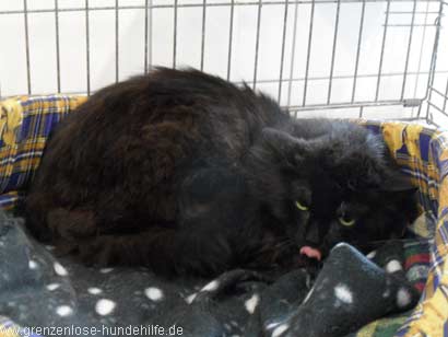 Moise ist sehr verängstigt im Tierheim. Als ich zu Ihm kam lag er eingerollt im Katzenklo. Ich nahm ihn heraus, redete Ihm sanft zu und streichelte Ihn behutsam. Er taute nun schnell auf, aber ich merkte bald: er muss hier schnell wieder raus.