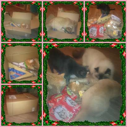 Dabei hat sie auch an Mojos Freunde auf der Pflegestelle gedacht und es war für alles etwas dabei.... selbst der Karton war ein tolles Geschenk für die Bande....