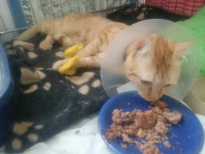 Woher die Verletzung kommen ist ein Rätsel, wahrscheinlich ist er vom (ungesicherten) Balkon gesprungen/ gefallen, vielleicht war es ein Vogel oder eine Katzendame die dem unkastrierten Kater gefiel.