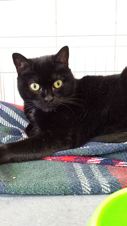 Monette ist eine ruhige schwarze Kätzin.