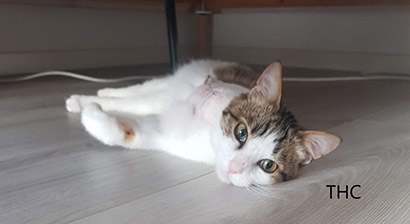 Der hübsche, ca. 5 Jahre alte Mousse wurde FIV positiv getestet und hat Probleme mit seinem rechten Vorderbein, welches er nicht belastet.