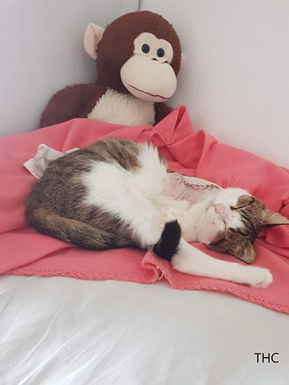 Die Amputation hat Mousse gut überstanden und erdarf sich jetzt auf einer Pflegestelle erholen. |