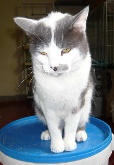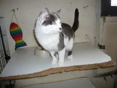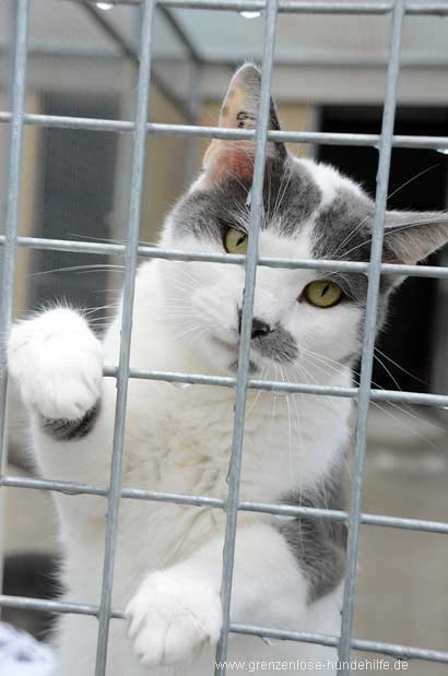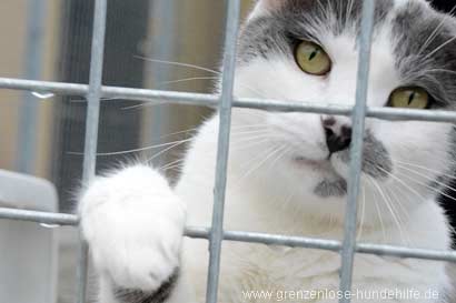 Ein Einzelplatz wäre aber auch sehr schön. Es ist so ein hübscher grau -weisser Kater, warum muss er so lange warten????? |