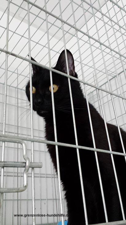 Schwarz sehen wir im wahrsten Sinn des Wortes öfters, leider ist es immer noch so das schwarze Katzen ungern adoptiert werden.