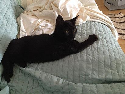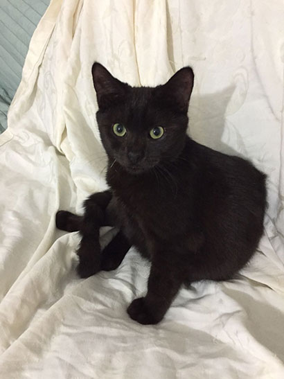 Nymeria ist mit ihrem lackschwarzen Fell und den goldenen Augen ist ein sehr hübsches Kätzchen.
