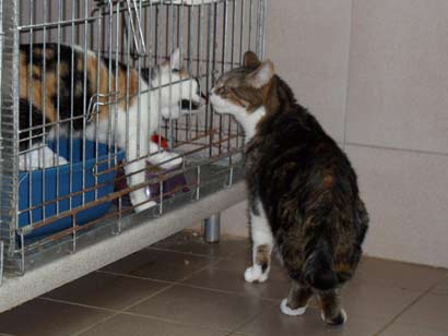 | Hier neue schöne Fotos vom liebebedürftigen Papi. Er versteht sich gut mit anderen Katzen, Trixie fand er sehr sympatisch (und umgekehrt). |