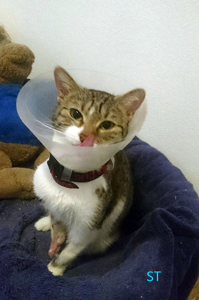 Die Kastration hat Suna zum Glück gut überstanden und endlich ist auch der blöde Lampenschirm ab.