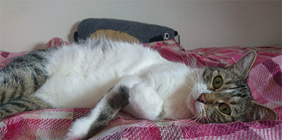 Suna ist so eine tolle Katze, die es einfach nur liebt dazu zu liegen, gestreichelt zu werden und die Umgebung durch das Fenster zu beobachten. |