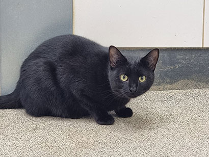 Unsere schwarze Schönheit Pavot zeigt sich sehr zurückhaltend und ist anfänglich eher scheu im Kontakt mit Menschen.