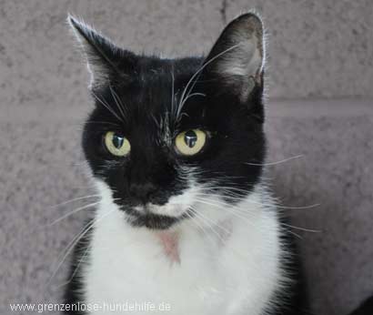 Sie ist neugierig und aufgeschlossen und lässt sich auch durch die vielen neuen Eindrücke und Katzen im Tierheim nicht verunsichern.
