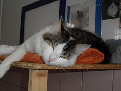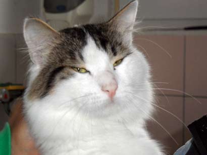 Tja was soll man sagen, ein Traumkater. Sobald man den Raum betritt, steht der schöne Angora-Mix-Kater da und schaut einem aus seinem wunderschönen Gesicht an. Petit Jean ist ca. ein jahr alt und ist sehr verschmust, verspielt und anhänglich. Er ist veträglich mit Artgenossen,scheint total unproblematisch und für Anfänger geeignet.