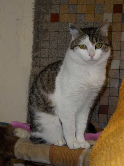 Der schöne Kater wurde abgegeben und wartet nun auch auf ein neues Zuhause. Er ist sehr verschmust, allerdings kann er bei einer falschen Bewegung auch mal seine Krallen ausfahren. Es wirkt als sei er verunsichert, auch durch die vielen anderen Katzen um ihn herum.