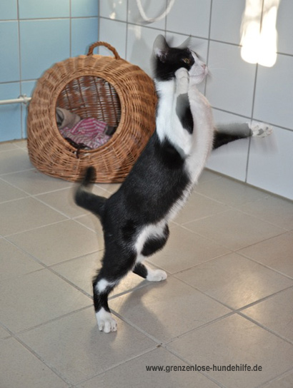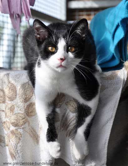 Auch die Gewöhnung an Hunde dürfte problemlos sein. Da er schon kastriert, gechipt und geimpft ist, könnte es eigentlich gleich los gehen für Pünktchen. Er ist noch so jung und sollte sein kleines Katzenleben genießen dürfen.
