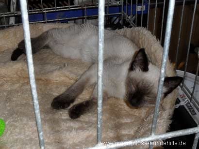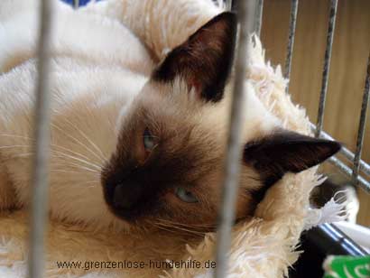 Man soll es nicht glauben : der reinrassige Seal Point Siamkater ist gerade mal 5 Monate alt und wurde ausgesetzt.