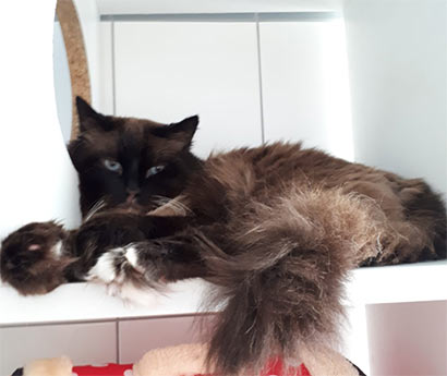 Der Besitzer des hübschen Buben musste leider ins Altenheim und seine Katze Reglisse kam mit zwei weiteren Katzen, ins Tierheim.