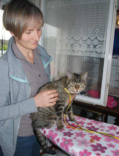 Jetzt war eine Pyhsiotherapeutin gefragt und dringend nötig, um den schrecklich laufenden Jungkater wieder auf die Beine zu stellen. Die natürlichen physiologischen Bewegungsabläufe mussten trainiert und wiederhergestellt werden. Die verkürzten Muskelgruppen sollten gedehnt, die schwachen Muskeln gestärkt und die Gelenke mobilisiert werden. Dazu waren Übungen auch z. bsp. auf unterschiedlichen Unterlagen gefragt, um eine Stabilisierung zu erreichen.