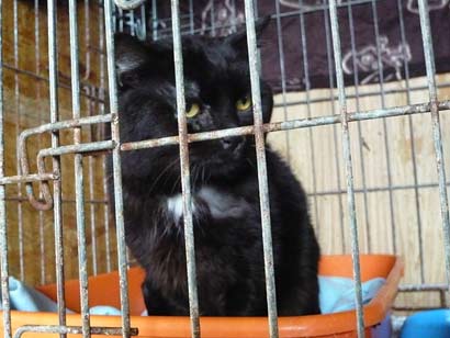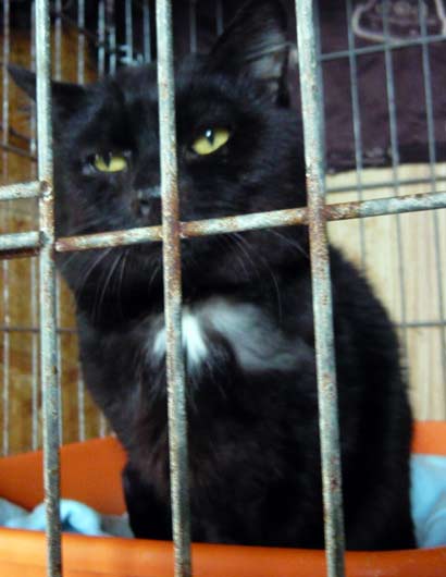 Romeo ist ca. 8 Jahre alt und sitzt ganz traurig in seinem Käfig.