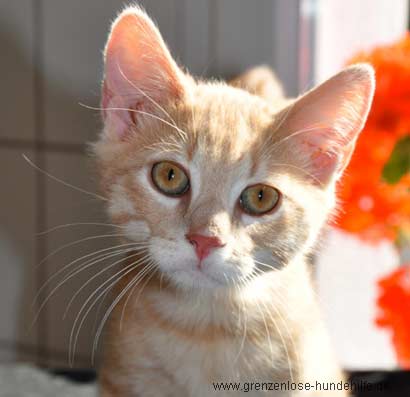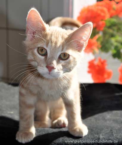Roucky der kleine süße rote Kobold ist absolut problemlos. Ein hübscher Jungkater der vieles noch nicht kennt und der neugierig die "kleine Welt" um sich herum erkundet.