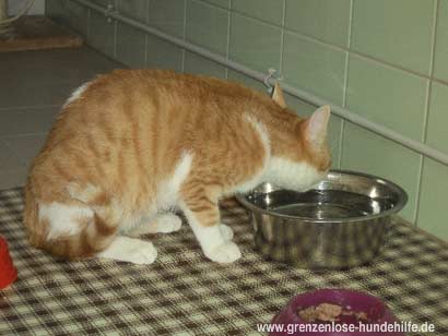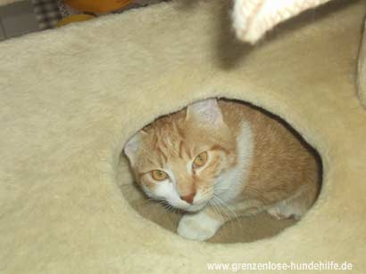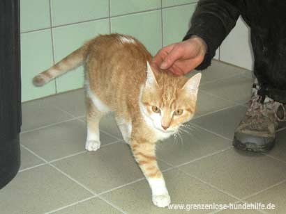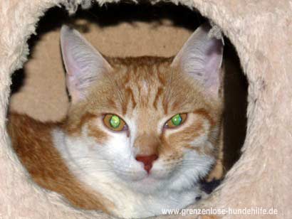 Mit Menschen ist er sehr lieb und kommt auch mit den anderen Katzen gut aus.
