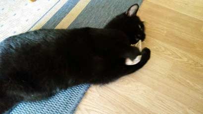 Er ist noch recht verspielt für sein Alter und ein ganz witziges Kerlchen. Am liebsten frisst er Trockenfutter.