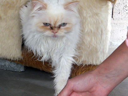 Sie wurde als reine Wohnungskatze gehalten. Momentan versteht sie die Welt nicht mehr und versteckt sich lieber in einer der vorhandenen Höhlen.