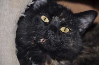 Samantha habe ich zum Fotografieren geweckt. Ganz verschlafen kriecht sie aus ihrer Höhle.