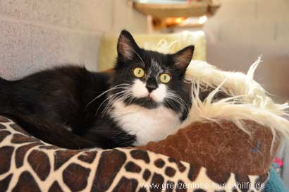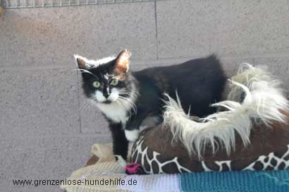 Select ist ein sehr zierliches, offenes, freundliches junges Katzen-Mädchen. Sie kommt sofort interessiert auf einen zugerannt und lässt sich bereitwillig auf den Arm nehmen. Gleich wirft sie den Motor an und genießt die Streicheleinheiten. Sie ist sozial mit anderen Katzen, aber das Tierheim ist ihr noch sehr unheimlich. Am liebsten wäre sie mir unter meinen Pullover gekrochen nach dem Motto: "nimm mich bitte mit und lass uns sofort hier verschwinden" Es fiel mir schwer, sie wieder in ihr Körbchen zu setzen und zurücklassen zu müssen.