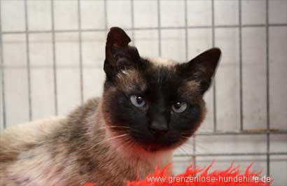 Siam ist ca. 3 Jahre alt und wurde in der Katzenklappe am Tierheim entsorgt.