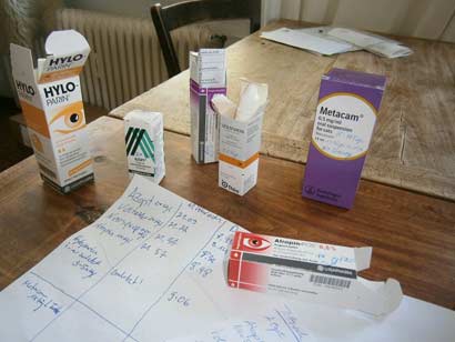 Es gibt gute Neuigkeiten: Smoky ist gestern völlig geplättet aus München wiedergekommen. Die Laser-OP war schwieriger als erwartet, aber es ist alles gut gegangen: Smoky wird noch lange leben und sie wird auf beiden Augen sehen können. Gerade waren wir hier in Freiburg bei der Nachkontrolle - die Prognose ist sehr gut. Noch bekommt Smoky mehrmals täglich fünf verschiedene Sorten Augentropfen und ist sichtlich erschöpft, aber sie lässt sich alles mit viel Geduld gefallen.