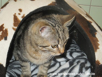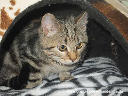 Der Jungkater würde lieber heute als morgen zu seiner Familie ziehen, idealerweise zu einem Spielkameraden mit dem er bald durch die Wiesen streifen und auf Bäume klettern kann.