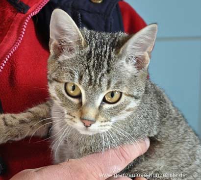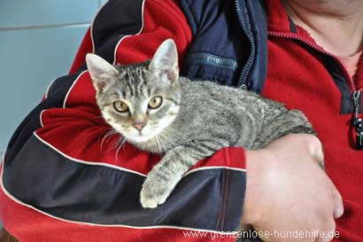 Susy, eine zierliche, grau-getigerte Katzendame, sollte bald zu ihren eigenen Menschen ziehen dürfen.