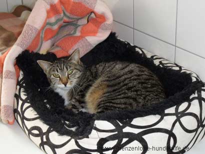 Sie ist eine sehr schüchterne Katze die viel Geduld braucht.