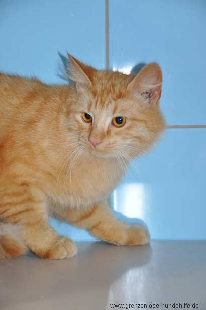 Tex ist ein ganz lieber Fundkater. Da für ihn momentan noch alles ganz neu ist, verhält er sich noch etwas zurückhaltend und beobachtet alles sehr aufmerksam. Sein Fell ist etwas länger mit einer wunderschönen roten Fellfarbe und seine bernsteinfarbenen Augen sind zum dahin schmelzen.......