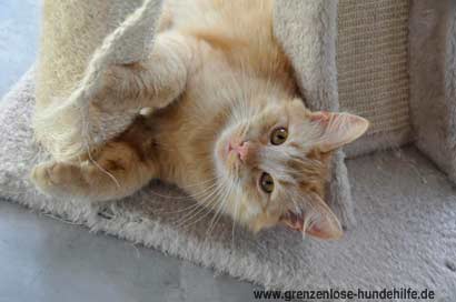Er verhält sich super gegenüber seinen Katzenkollegen und fordert sie auch gerne mal zum spielen auf.