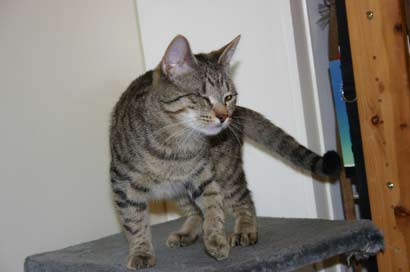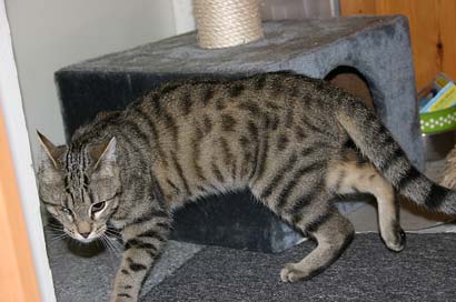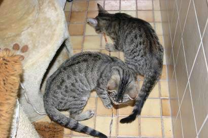 Beide Katzen sind recht schlank, (obwohl Timo dop. so groß aussieht) und haben eine schöne Graufärbung.